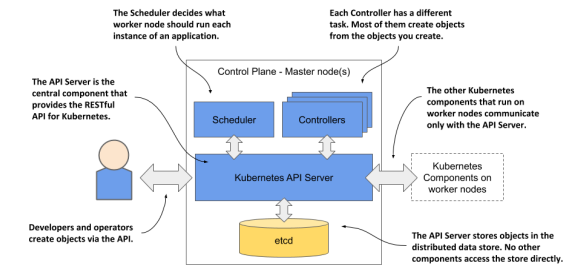 Kubernetes 프레임워크가 만들어지면 Kubernetes 내부에서 자동으로 application을 적절한 node들로 배치하고 이동시켜 주므로, 유저는 Control Plane에서 제공하는 Kubernetes API만으로 Workload Plane의 application을 제어할 수 있게 된다.