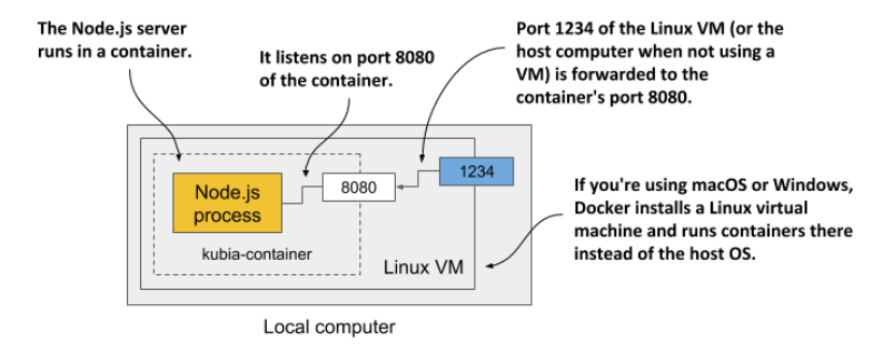 $ docker run --name kubia-container -p 1234:8080 -d kubia