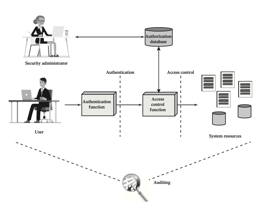 Authorization단계로 넘어가면, Access control function 은 사용자가 접근하려는 시스템 리소스에 대해 해당 사용자가 어떤 권한을 가지고 있는지 Authorization DB를 확인합니다.