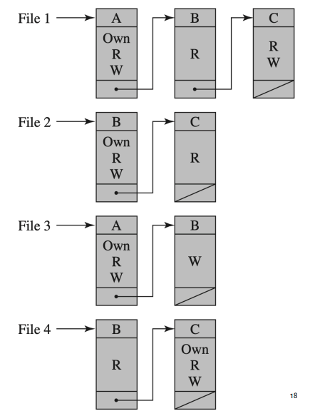 그래서 이 matrix 를 열단위로 분리한 ACL(Access Control List) 으로 만들어 사용하거나, 행단위로 분리한 Capability tickets 을 이용합니다.