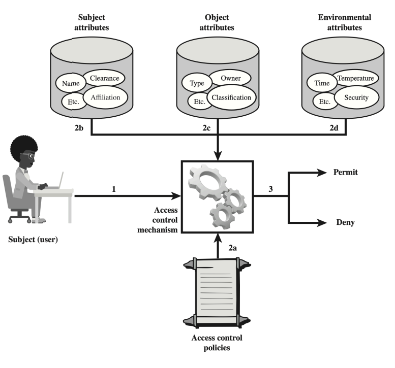 이 메커니즘은 주체와 객체, 그리고 환경 속성을 바탕으로 접근을 허가할지, 거부할지를 결정합니다.