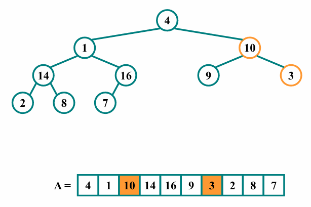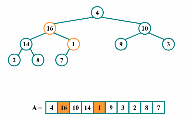 루프가 종료되는 시점은 i=0일 때입니다. 이 시점에서 불변식에 의해 모든 노드 1,2,…,n 은 최대 힙의 루트가 됩니다. 특히, 노드 1이 최대 힙의 루트가 되므로 전체 배열 A는 최대 힙으로 정렬됩니다.