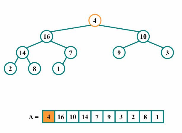 - BUILD-HEAP(A,n) 의 알고리즘은 다음과 같이 동작합니다.