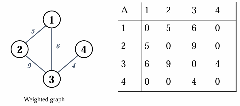 간선의 가중치가 존재하면,각 간선의 가중치에 해당하는 값을 행렬에 써주면 됩니다.