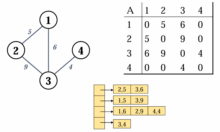 가중치가 있는 경우, 정점과 간선의 가중치의 pair을 적어주면 됩니다.