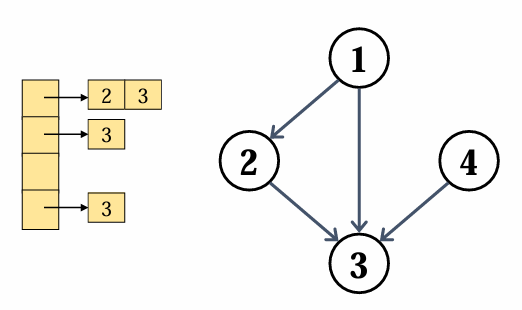 정점 1,2,4가 정점 3을 향해있는것을 볼 수 있고, 정점3에서 나가는 간선은 없는것을 확인할 수 있습니다.
