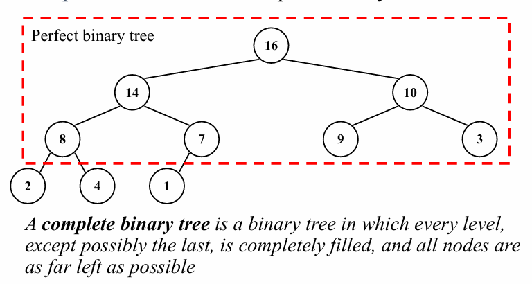 - 완전 이진 트리는 트리의 모든 레벨이 가득 차 있거나 마지막 레벨이 왼쪽부터 순서대로 채워진 구조를 의미합니다.