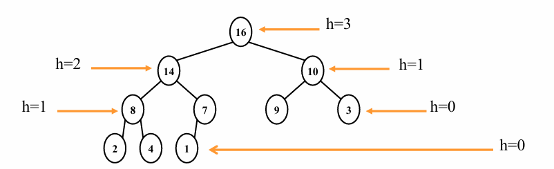 - h(i)를 노드 i 의 높이라고 하면, HEAPIFY 함수는 각각의 노드에서 최대 h(i) 번 재귀 호출될 수 있습니다.
