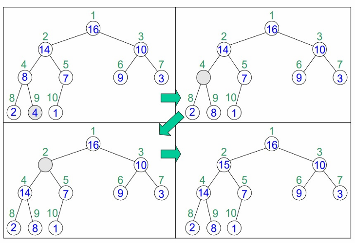 4. 다시 15의 부모 노드 A[2] = 14와 비교합니다.