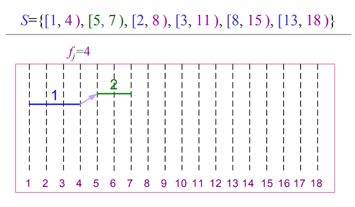 즉, 는 와 사이에서 를 선택하고, 그 사이에서 호환 가능한 최대 크기의 활동 집합을 찾는 문제로 나눌 수 있습니다.