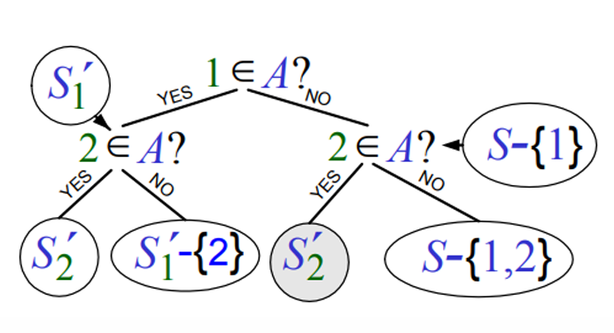 이때, 정수는 활동, A는 최적해를 구성하는 집합, S는 전사건으로 보고, S'은 S의 부분집합으로 이해하면 됩니다.