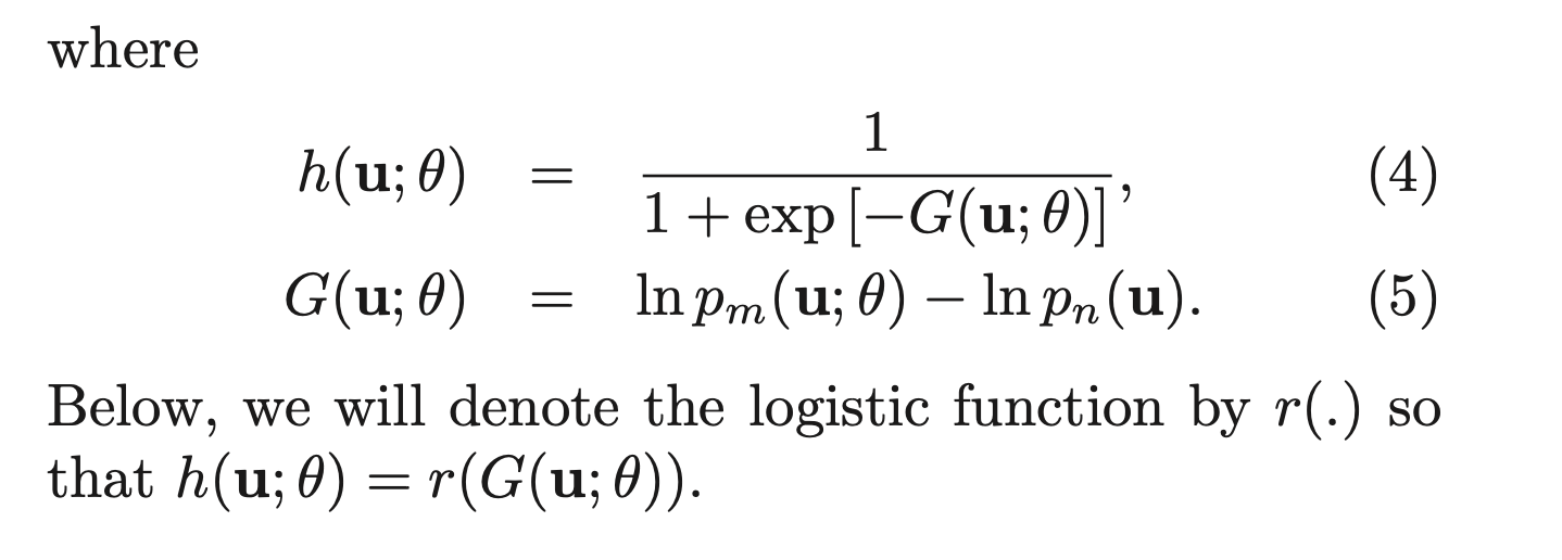만약 training data가 개까지 있다고 가정해보자. 이때 이 데이터들이 샘플링되었다고 가정되는 이라는 확률 분포가 존재한다고 생각하자. 우리는 이 을 최적화하는 것이 목표이다. () 원래는 지금까지 모든 클래스에 대한 를 최적화하는 것이 목표였다. NCE는 여기서 fake인 probability distribution도 도입한다. 그리고 N개 를 랜덤하게 sampling 한다. 이때 과 에서 나온 데이터들이 구분되도록 학습을 한다. 마치 가짜인지 진짜인지 구분하는 binary classification 문제가 된 것이다.