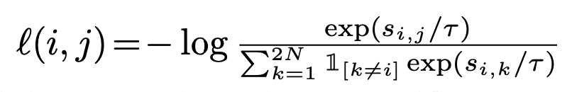여기서 loss는 분자에 유사한 이미지 pair 의 점수, 분모는 자기자신을 제외한 나머지 이미지들, 즉 유사하지 않는 pair들의 점수 가 오게 된다.