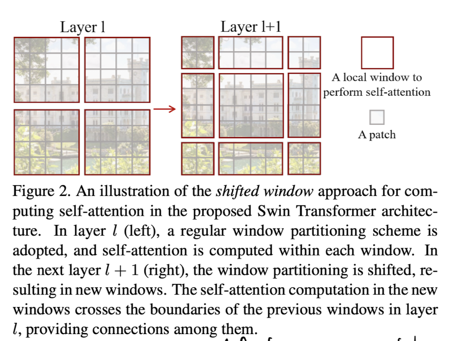 또한, window를 sliding하는 대신 다음 layer의 window 크기를 shift함으로써 latency도 줄이고, 다른 patch들간의 연관성 또한 반영할 수 있다. shift window를 만드는 방법은 아래에서 자세하게 설명하겠다.