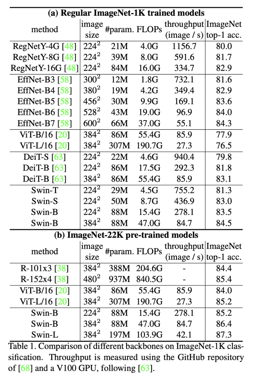 ViT가 등장한 이후, vision 분야에서의 transformer 연구가 활발히 이루어지고 있다. Data efficiency를 고려한 DeiT도 존재하고, 또 다른 후속 논문으로는 Swin Transformer가 존재한다. Swin transformer는 shifted windowing scheme을 통해 linear한 computational complexity과 성능을 동시에 보장했다는 점에서 의미가 있는데, 아래에 자세하게 소개해보도록 하겠다.