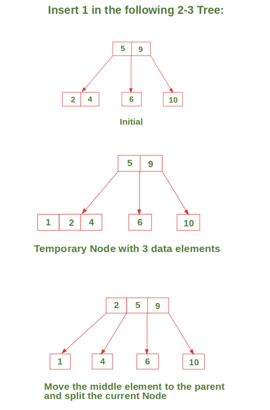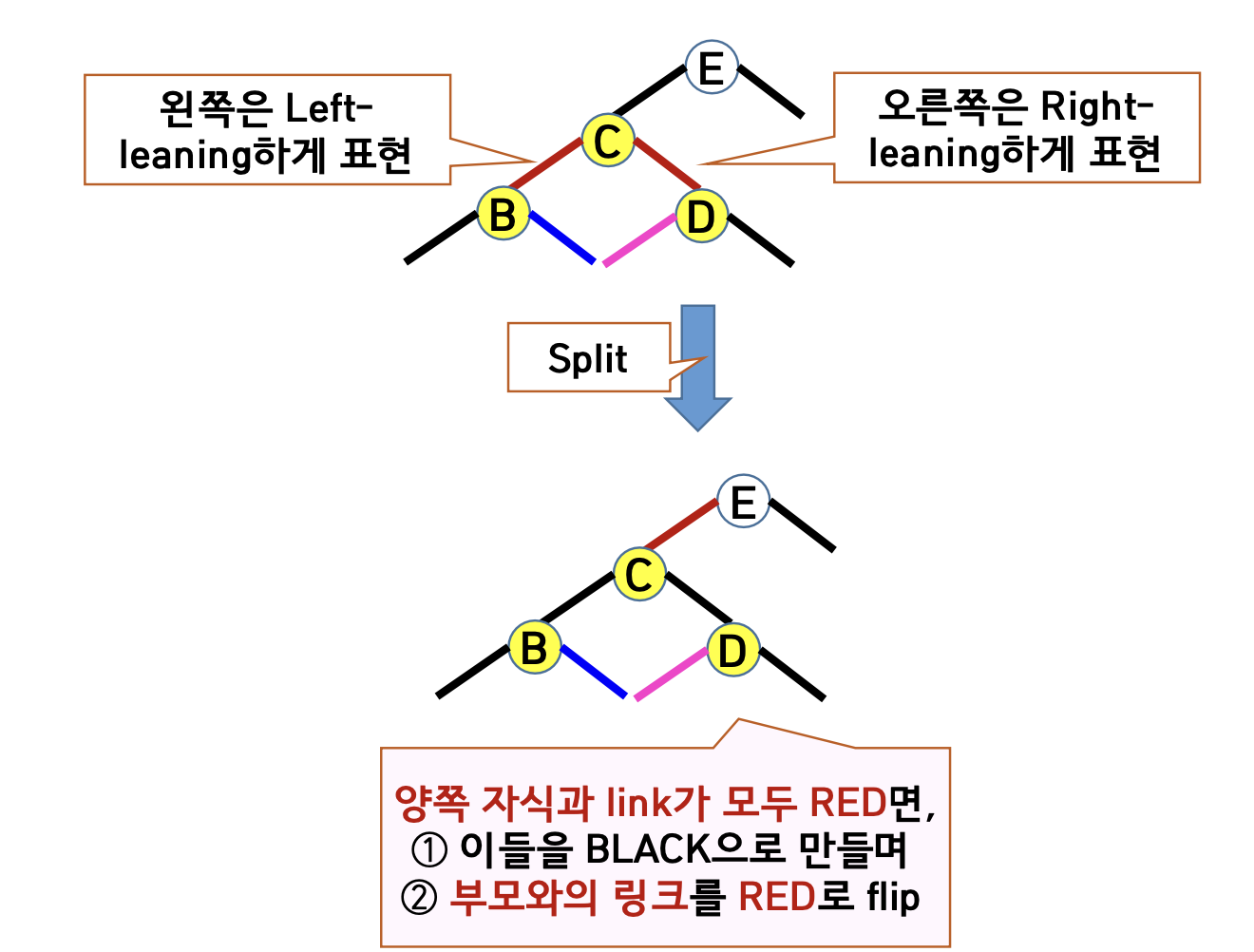 한쪽으로 노드가 몰리게되면 (4-Node) 해당 노드가 Split하면서 양쪽이 균형잡힌 트리로 분화하게 된다.
