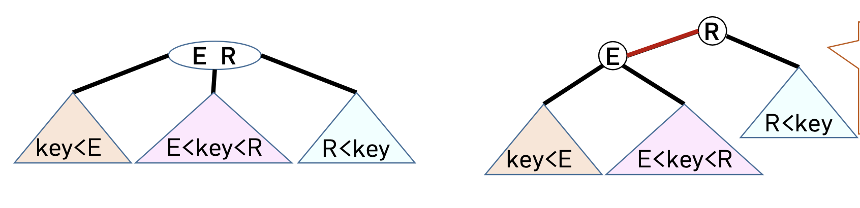 깊이 유지가 되는 이유는 4-node 가 되는 경우 split하여 균형잡힌 트리로 분리되기 때문