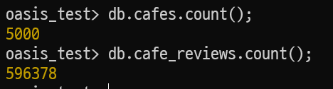 해당 api 성능을 테스트하기 위해 cafes 컬렉션 document 사이즈가 5000, cafe_reviews 컬렉션 사이즈가 500,000 이상의 데이터를 삽입하고 테스트를 진행해보니 응답이 많이 지연됐습니다.