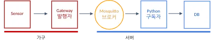 sensor는 센서 데이터를 생성하는 엣지 노드로, zigbee 기반의 다양한 값을 측정하는 디바이스를 의미Gateway 는 센서와 직접 연결되는 hub 역할로 센서 데이터를 전달MQ 는 gateway에서 전달된 메세지를 Subscriber(application)에게 전달 하는 역할 → MQTT Broker 사용Subscriber은 메세지 큐에서 센서 데이터를 전달 받아 파싱 후 각 센서 타입에 맞게 DB에 삽입 → Python 으로 구현DB 는 최종적으로 데이터가 저장되는 노드이제 각 단계에서 어떻게 데이터가 전달되고 저장되는지 자세하게 다뤄보자.