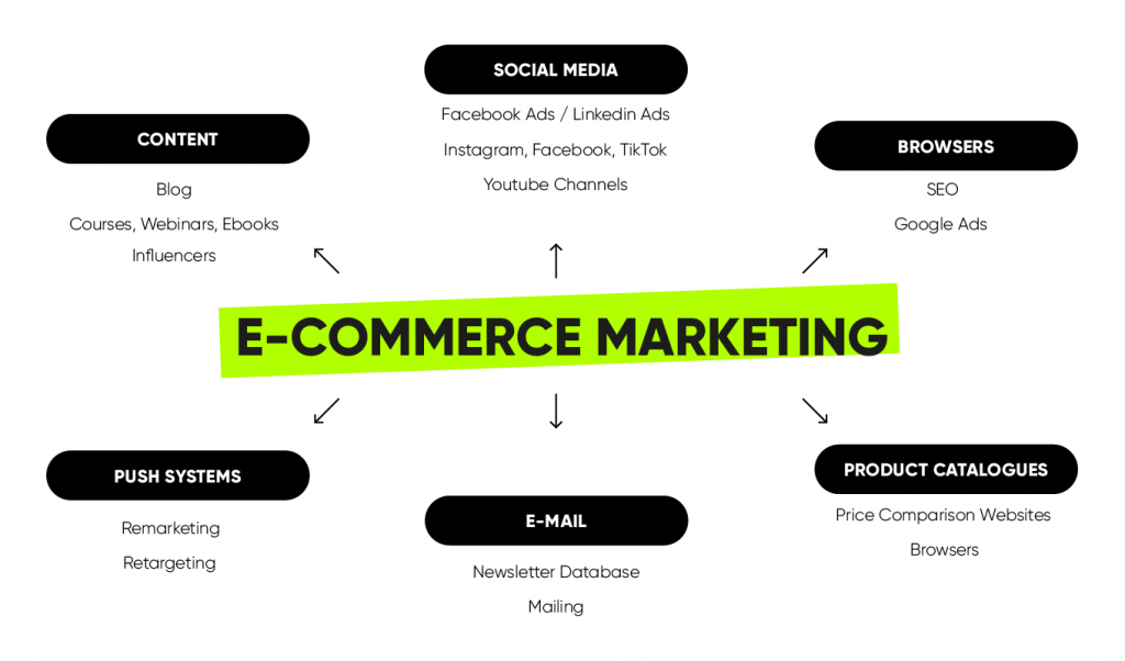 Platforms like Instagram, Facebook, and TikTok are essential for e-commerce marketing. Engaging your audience with exciting posts, giveaways, and live sessions can enhance brand awareness and boost sales.