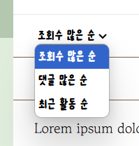 게시글 정렬을 위한 옵션을 선택할 수 있는 귀여운 select box를 만들고 싶었습니다.