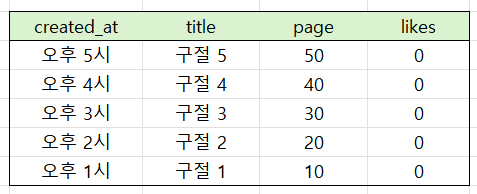 그리고 cursor에는 오후 6시 값이 저장되고, 다음 페이지를 불러올때는 lt 함수를 이용하여 오후 6시보다 작은 5개 데이터를 불러옵니다.
