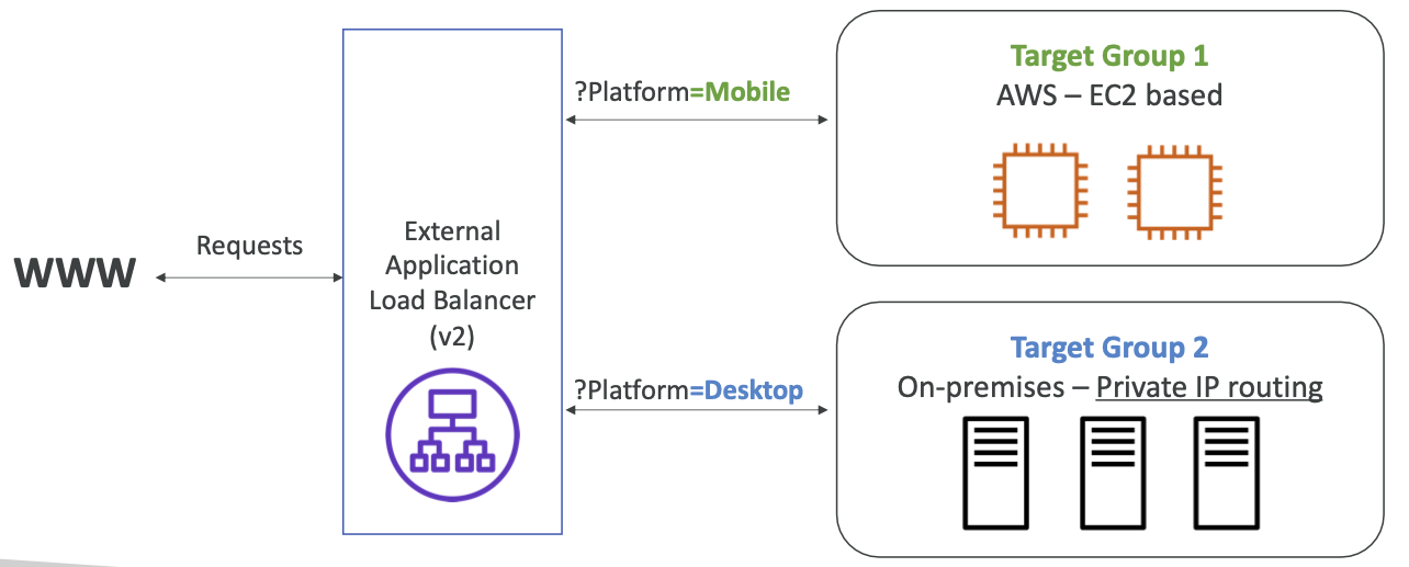 example.com?id=123과 example.com?order=345를 다른 대상그룹에 라우팅 할 수 있다.