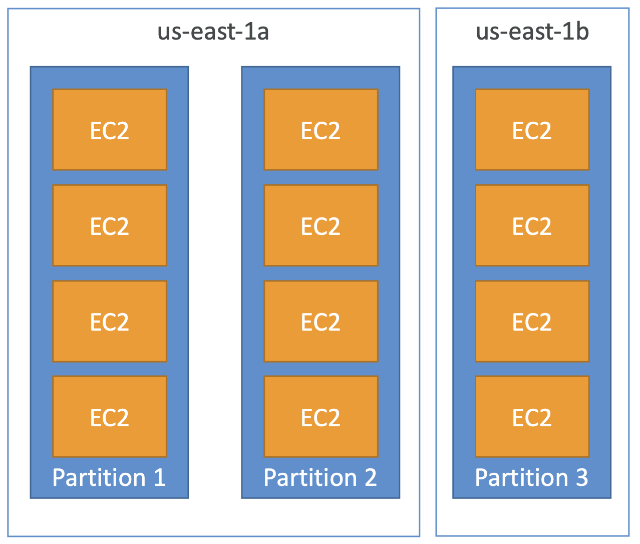 가용 영역 당 7개의 파티션으로 제한되지만 파티션 내의 인스턴스 수에는 제한이 없다.