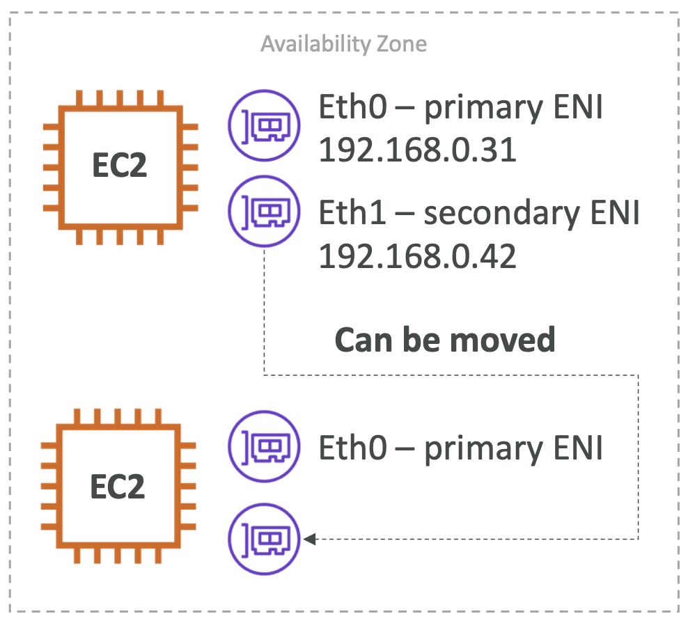 기존에 다른 인스턴스에 적용되고 있던 ENI를 옮겨서 사설 IP 주소를 이동시킬 수 있다.