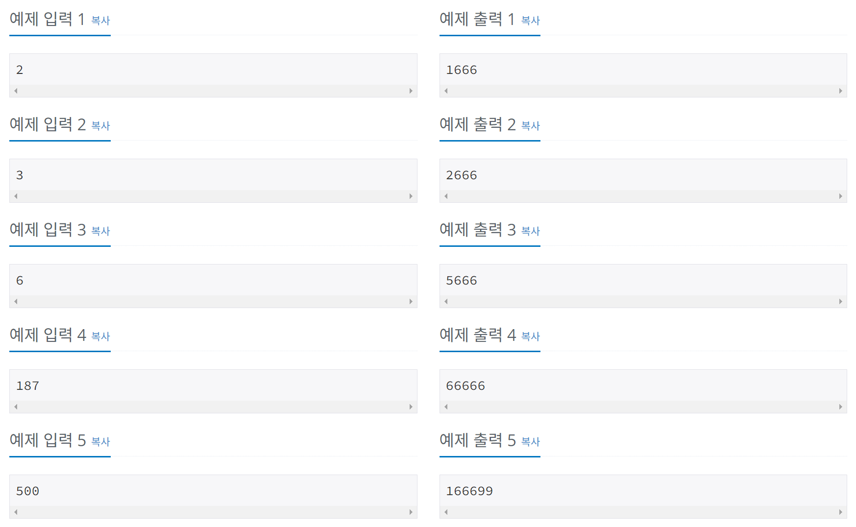 - 1씩 증가시키면서, 666이 나올 때마다 count를 증가