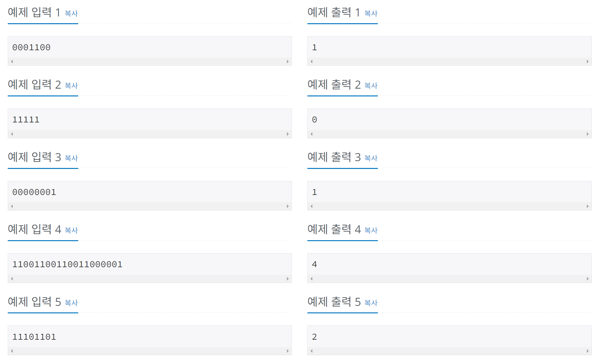 (4), (5)를 보면, 연속된 수가 3번 이상 끊길 경우, 끊긴 횟수 n를 2로 나누면 된다. (n이 홀수라면 올림)