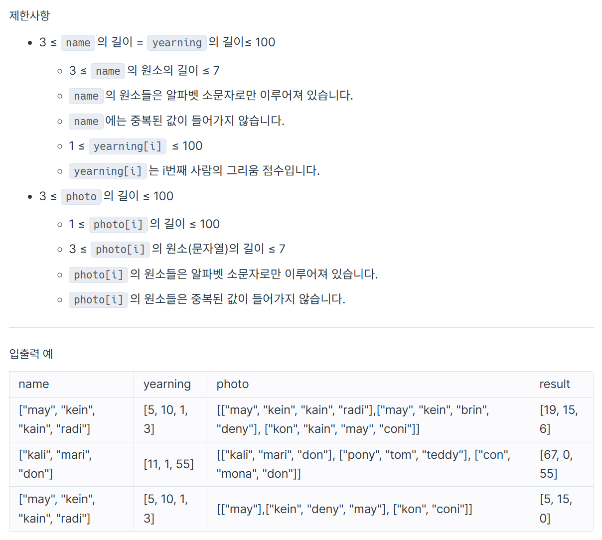 🔗 프로그래머스 Lv.1 - 추억 점수