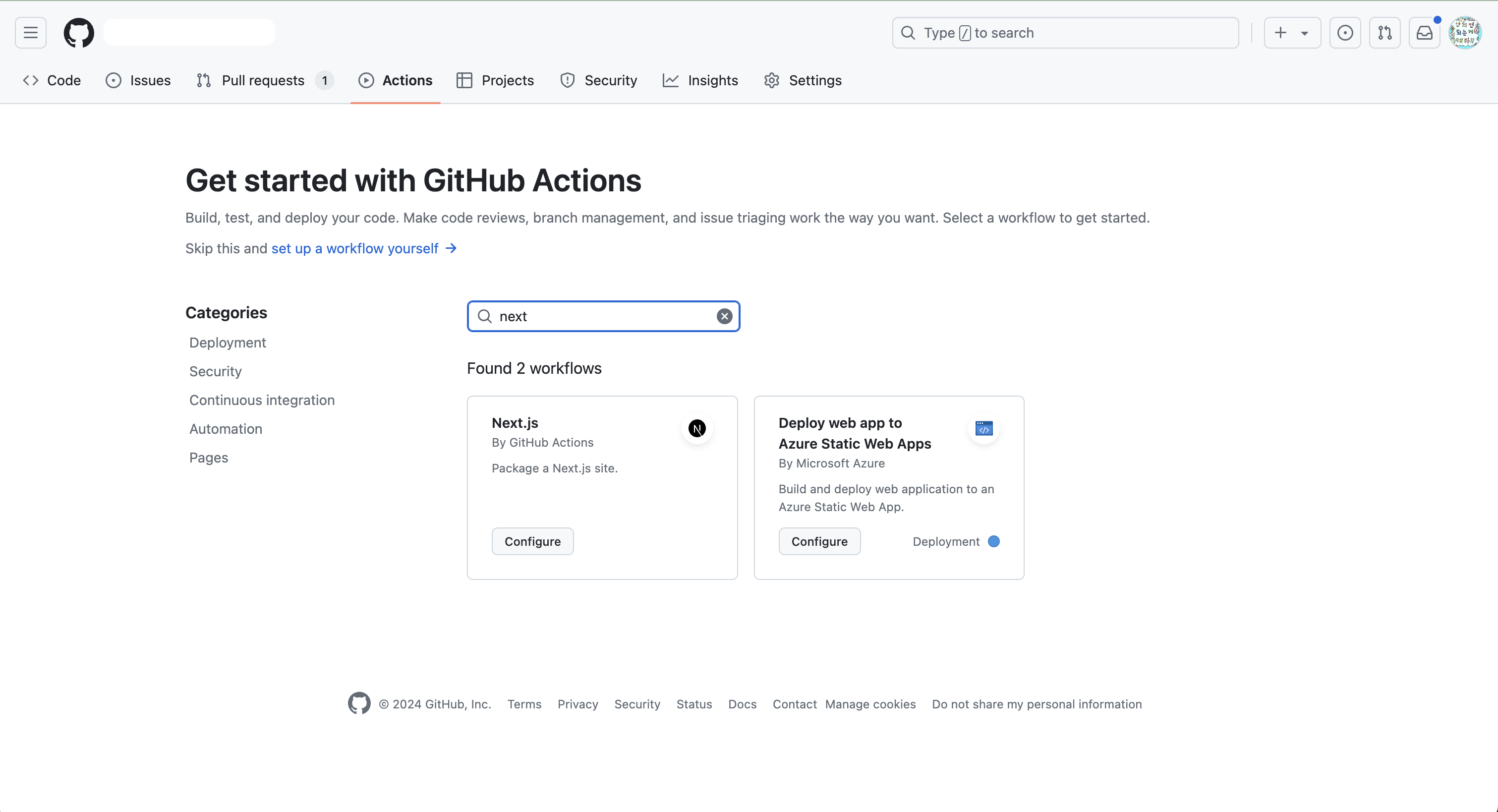 workflow 에 대해서는 아직 자세히 알지 못해서 next js build 및 배포를 위해 만들어져 있는 workflow 파일을 gpt 에게 물어가며 만들어서 등록했다.