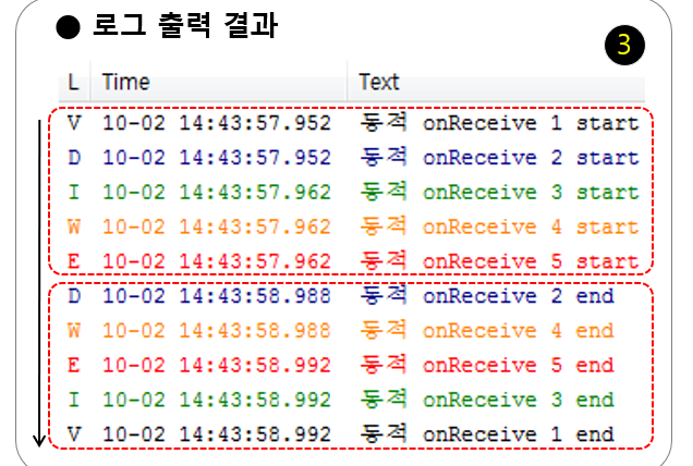 위에서 언급하였다시피 Receiver는 메인 스레드 동작이므로 오래 걸리는 작업을 넣어 두면 액티비티에도 영향을 줄 수 있다.