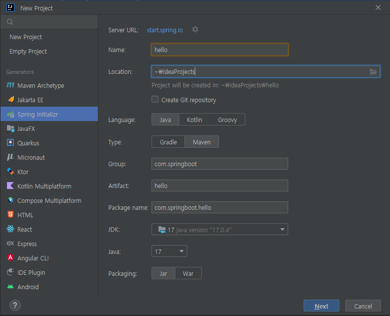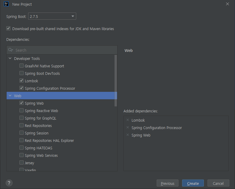 Lombok, Spring Configuration Processor, Spring Web 추가 후 생성결과