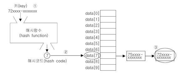 o 예를 들어, "apple"과 "banana"가 해시 값 4를 반환한다면, 해시 테이블의 4번 위치에 ["apple", "banana"]와 같은 형태로 리스트를 만들어 데이터를 저장합니다.