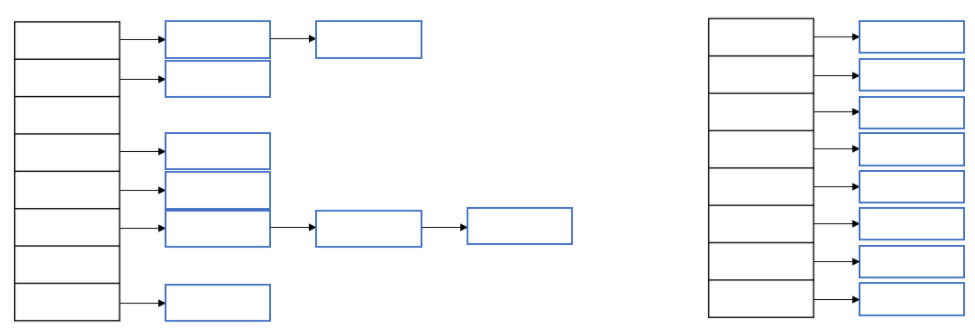 o 체이닝은 충돌이 발생한 위치에 연결 리스트(Linked List)를 사용하여 여러 개의 데이터를 저장하는 방식입니다.