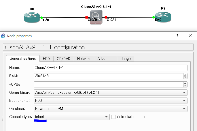 ASAv 전원 끈 후 console type을 telnet으로 변경