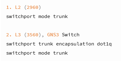 사용하는 프로그램, 스위치에 따라 trunk 설치 시 입력해야하는 명령어 차이가 있다
