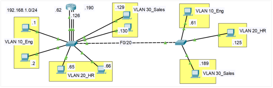 스위치의 트렁크 포트를 통해 모든 VLAN들이 이동할 수 있도록 함