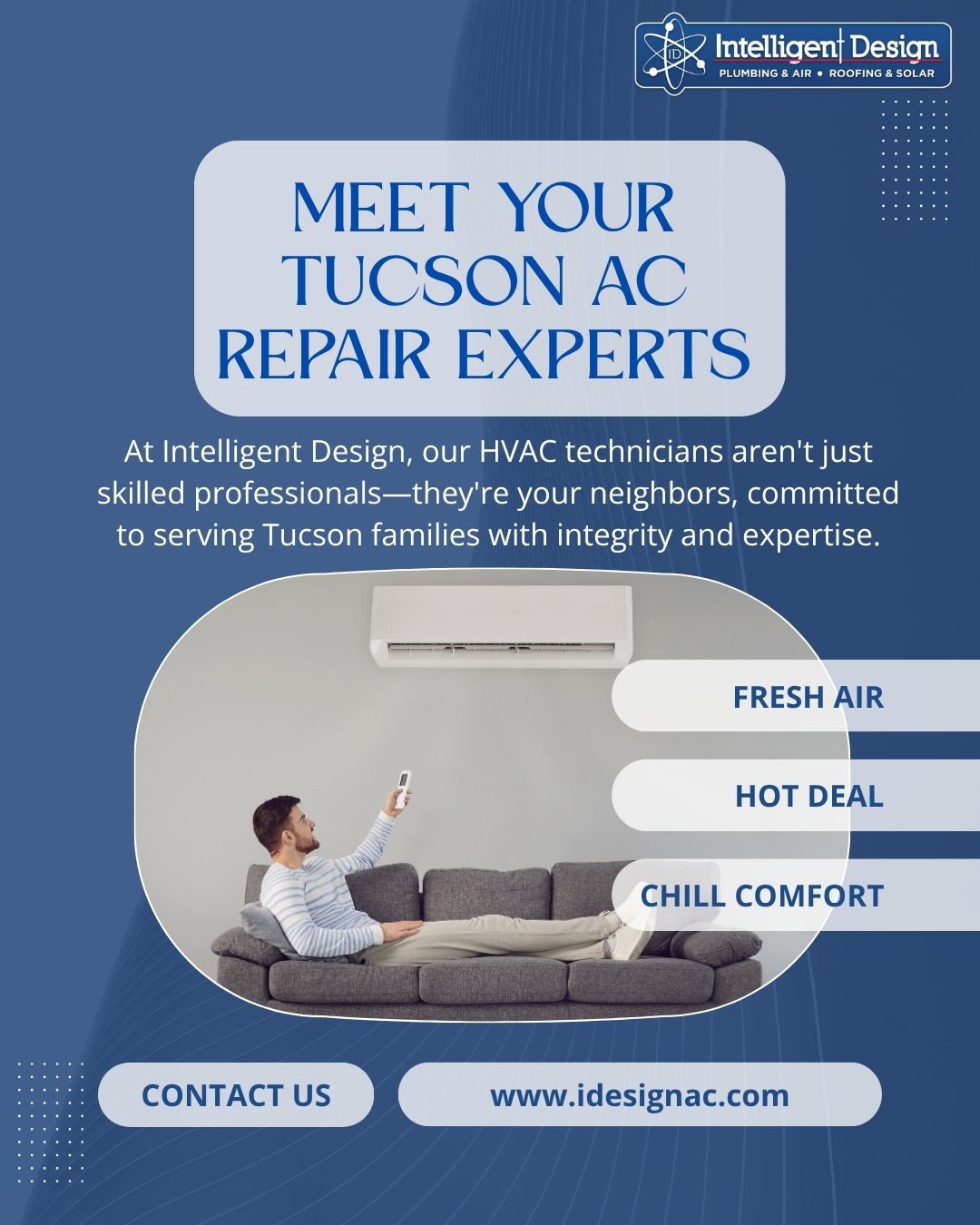Top-rated AC repair in Tucson, AZ. Fast, reliable air conditioning repair & service. 24/7 emergency AC repair. Stay cool with affordable Tucson a/c repair solutions from Intelligent Design.