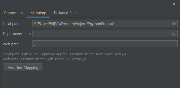 - Deployment path : Local 파일을 저장할 원격 서버 위치