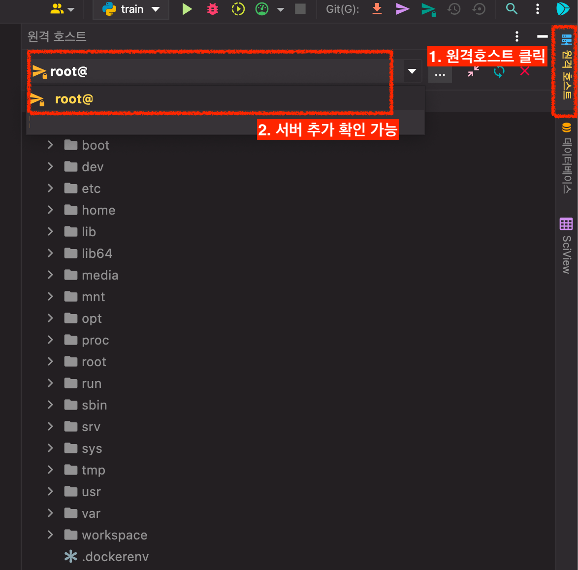 6. 우측 상단 원격 호스트(Remote Host)클릭