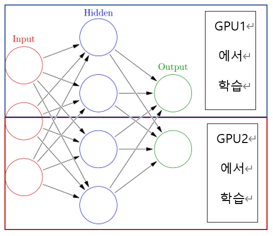모델을 나눈 뒤 여러 개 GPU에서 학습시키는 방법이다.