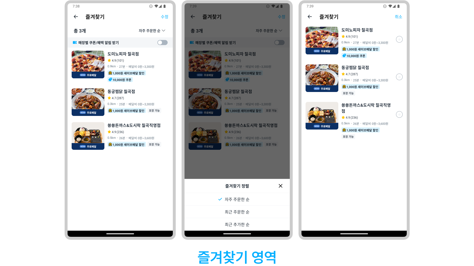 즐겨찾기 영역 : 해당 가게에 빠르게 접근할 수 있는 링크를 제공하는 영역입니다. 즐겨찾기에 등록한 가게의 혜택 알림을 빠르게 받는 데 의의가 있습니다.