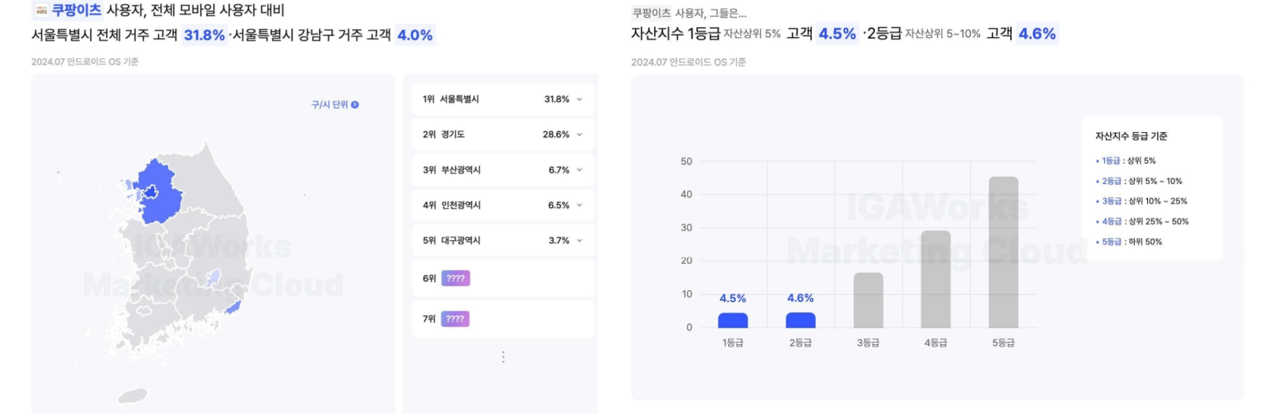 지역별 사용자 분포: 주요 사용자는 서울에 집중되어 있으며, 경기도와 부산이 그 뒤를 잇고 있습니다. 이러한 특징에서 기인해, 주요 사용자 층의 소득수준이 높은 편입니다. 이들은 높은 서비스 품질을 기대하며 비용을 지출할 용의가 있는 사용자군으로 보입니다.