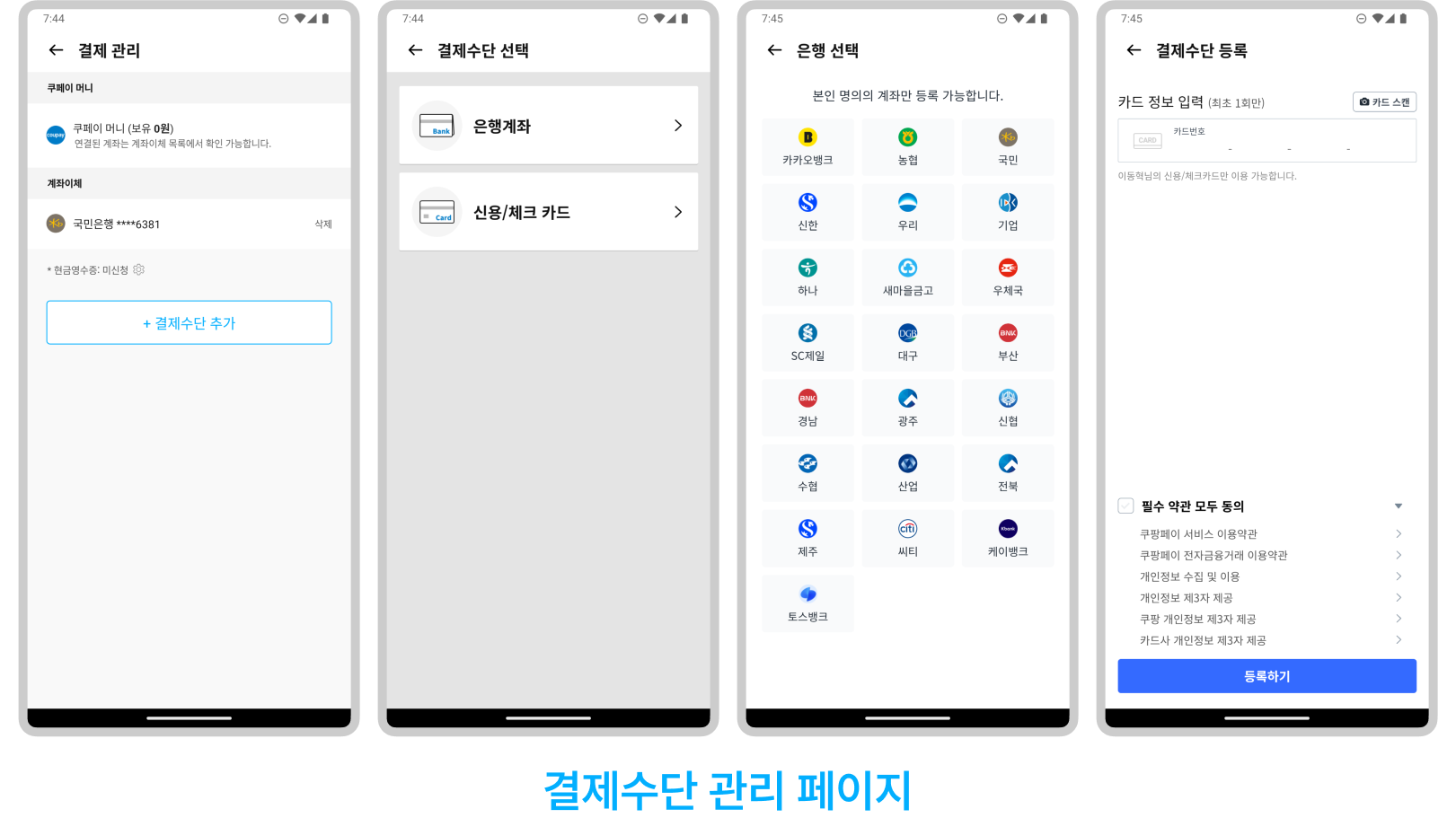 결제수단 관리 페이지 : 사용자 결제 수단을 추가하고 관리할 수 있는 영역입니다.