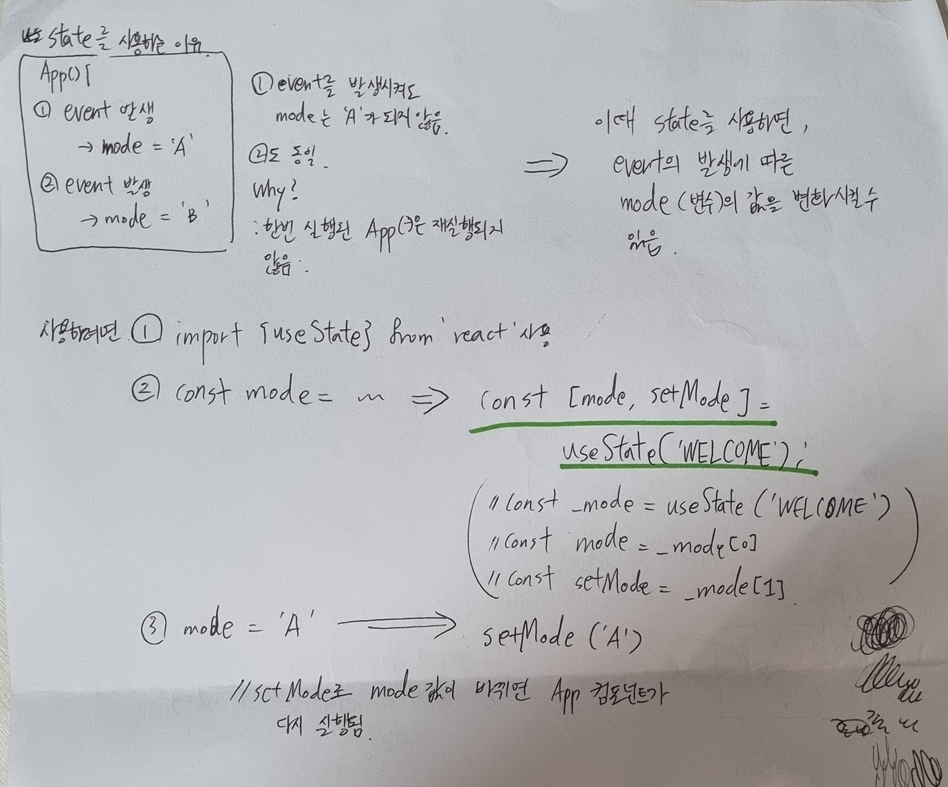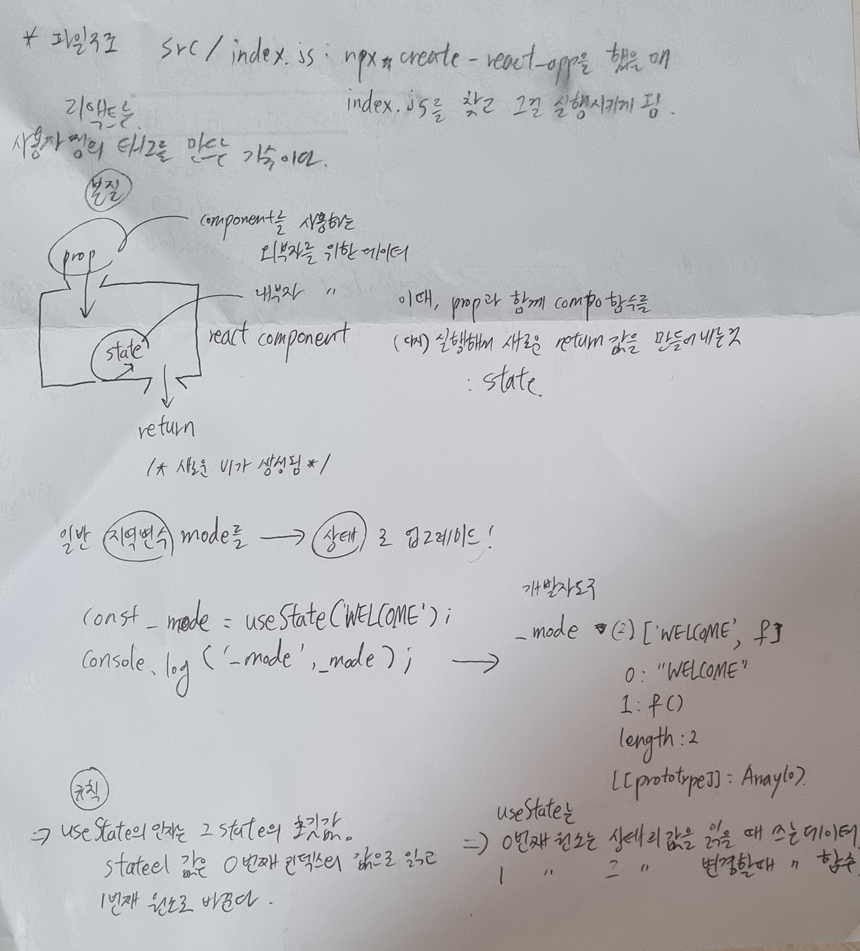 //state는 컴포넌트 안에서 얼마든지 수정이 가능