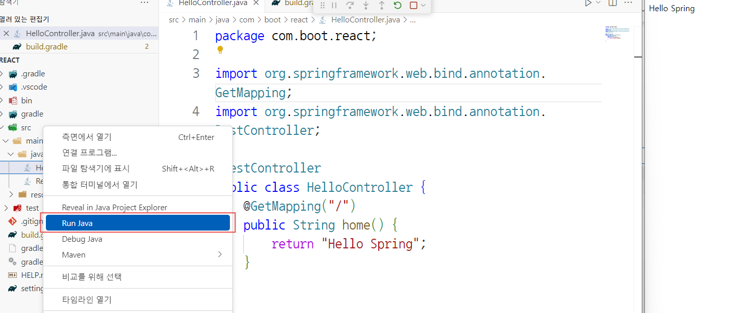VS코드는 자체적인 MAVEN, Gralde 입력창이 없다