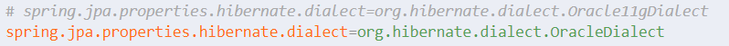 application.properties 파일에서 spring.jpa.properties.hibernate.dialect 설정이 잘못됐다는 걸 알았다. spring.jpa.properties.hibernate.dialect=org.hibernate.dialect.OracleDialect로 설정하면 여러 버전의 Oracle DB랑 호환될 수 있다. 이 설정이 하면 Oracle 11g, 12c, 21c 같은 버전들 모두 잘 동작한다. 특정 버전에 얽매이지 않아서 나중에 DB 버전 업그레이드해도 문제가 없을 것이다.
